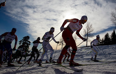 Teine ja veelgi suurem häda on teravustamisega. Kes luges mu postitust Holmenkolleni udust, teab, millest jutt. Ehk mida rohkem lund jääb fotograafi ja objekti vahele, seda kehvem. Nimelt ei saa kaamera aru, kas fokusseerida eesolevale lumele või... keskel olevale lumele või... kahe lumekardina taga mäslevatele palluritele. Seega pikad objektiivid ennast ära ei tasunud. Mida lähemalt sa pildistad, seda rohkem kardinaid jääb pallurite taha.